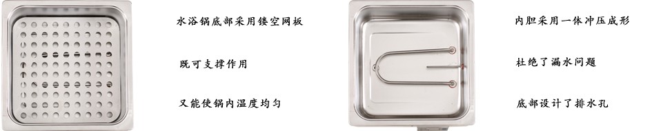 外壳采用优质冷轧钢板制成,表面喷塑处理,工作室及下框上框及盖顶均用不锈钢板制成,箱体与工作室间填充优质保温材料,结构设计合理,抗蚀性强,造型美 观,温控系统采用较可靠的调节控制装置,感热性强,灵敏度高,在使用范围内可任意调节,能直接测量箱内实际水温加热装置采用封闭式加热器,可直接浸入水 中,热能损耗小。