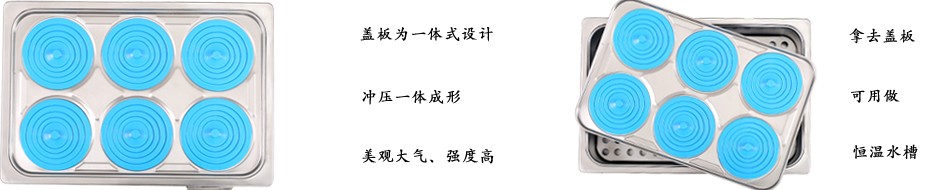 外壳采用优质冷轧钢板制成,表面喷塑处理,工作室及下框上框及盖顶均用不锈钢板制成,箱体与工作室间填充优质保温材料,结构设计合理,抗蚀性强,造型美 观,温控系统采用较可靠的调节控制装置,感热性强,灵敏度高,在使用范围内可任意调节,能直接测量箱内实际水温加热装置采用封闭式加热器,可直接浸入水 中,热能损耗小。